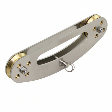 Die Edelstahlkonstruktion ist extrem robust und für den dauerhaften Einsatz unter maritimen Bedingungen konzipiert. Die Messing-Rollen sind korrosionsbeständig und bieten einen reibungsarmen Lauf. Das Gleitlager mit 35 mm Durchmesser gewährleistet eine sichere und präzise Umlenkung. Der Block ist für Drahtseile bis 5 mm Durchmesser geeignet. Die kompakte Bauweise ermöglicht eine platzsparende Installation. Der integrierte Befestigungsring ermöglicht eine einfache Montage. Ideal für Segelyachten, Regattaboote und alle Schiffe, die einen zuverlässigen Umlenkblock für Achterstagspanner benötigen.