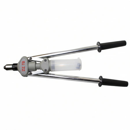 Das Hebelnietwerkzeug BZ 72 ist ein professionelles Werkzeug für die Verarbeitung von Blindnieten im Bereich von 4,0 bis 6,4 mm. Das Hauptaugenmerk liegt bei diesem Werkzeugtyp auf einer besonders langlebigen, robusten Konstruktion für den täglichen Einsatz in Werkstätten oder auf Baustellen. Die Lieferung erfolgt in einem schlagfesten Kunststoffkoffer. Inklusive Klemmbacke und Mundstück für 4,0-4,8 / 5,0-6,0 / 6,4 mm Nieten.