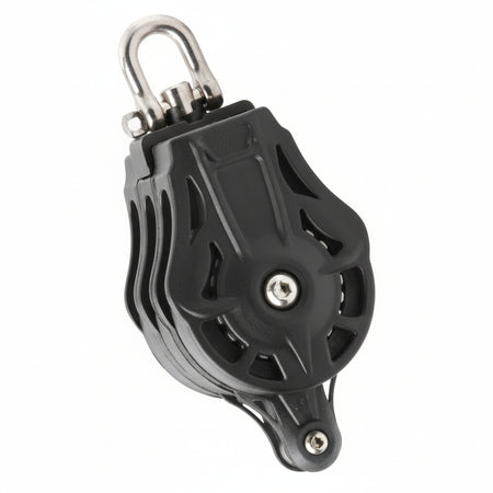 Der WICHARD Dreifachblock kombiniert französische Ingenieurskunst mit maritimer Präzision. Erhältlich in gleitgelagerter oder kugelgelagerter Ausführung, bietet dieser Dreifachblock mit 35 mm Scheibendurchmesser maximale Effizienz für Tauwerk von 8–9 mm. Das Wirbelauge und der Hundsfott (U-Bügel) ermöglichen flexible Befestigungsoptionen an Bord.
