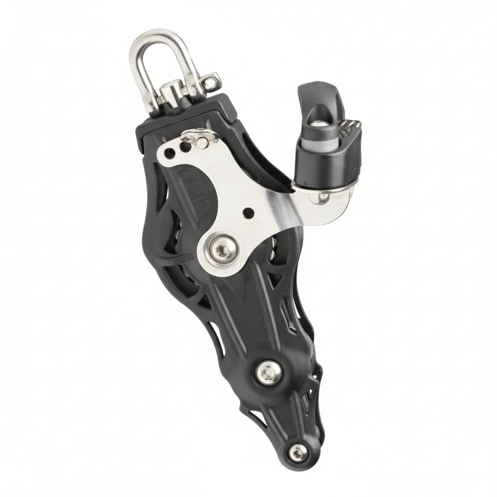 Der WICHARD Violinblock mit Wirbelschäkel, Hundsfott und Klemme ist ein hochwertiger Violinenblock mit integrierter Klemme für schnelles und sicheres Klemmen des Tauwerks. Erhältlich wahlweise mit Gleitlager oder Kugellager. Mit einer Bruchlast von 2700 kg und geeignet für Tauwerk bis 14mm Durchmesser eignet sich dieser Violinblock perfekt für anspruchsvolle Segelanwendungen auf Yachten und Segelbooten.