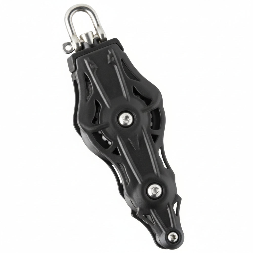 Dieser WICHARD Violinblock vereint Funktionalität und Langlebigkeit. Der Wirbelschäkel ermöglicht eine flexible Befestigung ohne Verdrehungen, während der Hundsfott zusätzliche Flexibilität bei der Montage bietet. Ideal für Schoten, Fallen und andere Anwendungen an Bord.