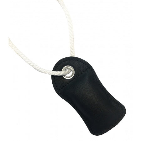 Technische Spezifikationen: Material echtes Leder, Gewicht 400 g, Farbe schwarz, Edelstahl-Öse eingepresst, korrosionsbeständig, für Festmacherleinen, langlebig.